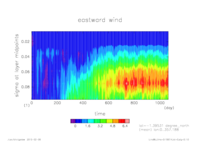 東西風. 赤道断面 (鉛直座標は対数プロット)