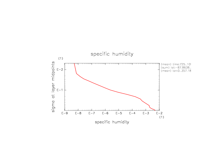 比湿. 赤道断面 (鉛直座標は対数プロット) |