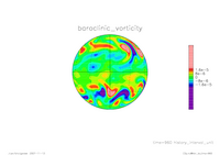 結果 : 回転球面における 2 層減衰乱流の数値計算 (T42)