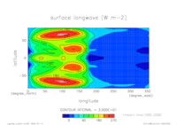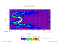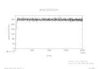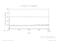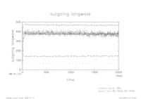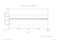 熱フラックス時系列 全球平均 (実線:OLR, 破線:SLR, 点線:降水, 一点鎖線:潜熱, 二点線:顕熱)