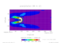熱フラックス赤道断面 全球平均 (実線:OLR, 破線:SLR, 点線:降水, 一点鎖線:潜熱, 二点線:顕熱)