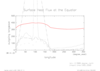 熱フラックス赤道断面 昼半球平均 (実線:OLR, 破線:SLR, 点線:降水, 一点鎖線:潜熱, 二点線:顕熱)