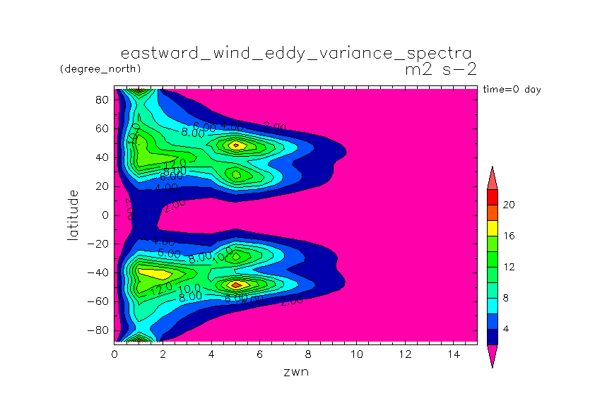 200-1200 日目の時間・鉛直平均東西風東西スペクトル