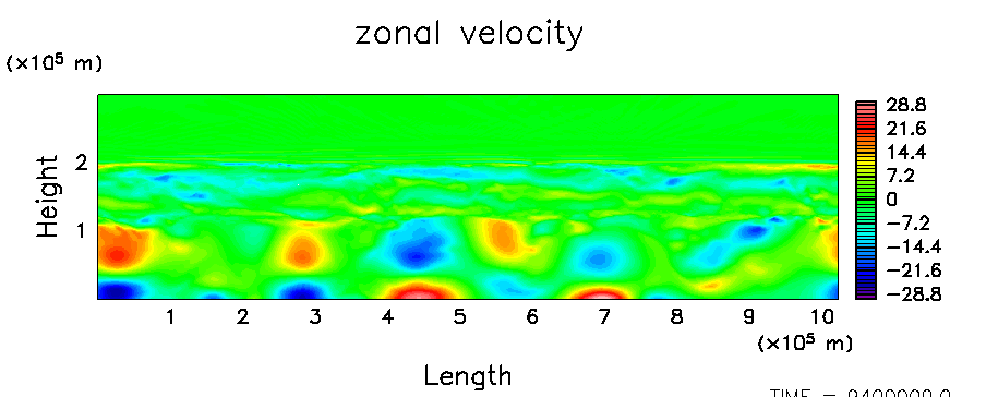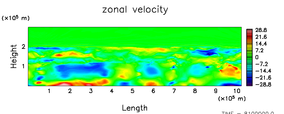 木星大気における平均的な流れ場と凝結成分の分布を数値的に求める.