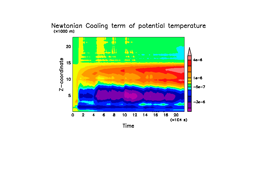 - -2 [K] * (15 [km] - z)/5 [km] [K/day]