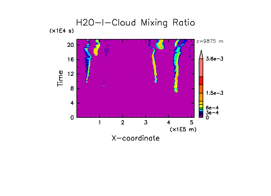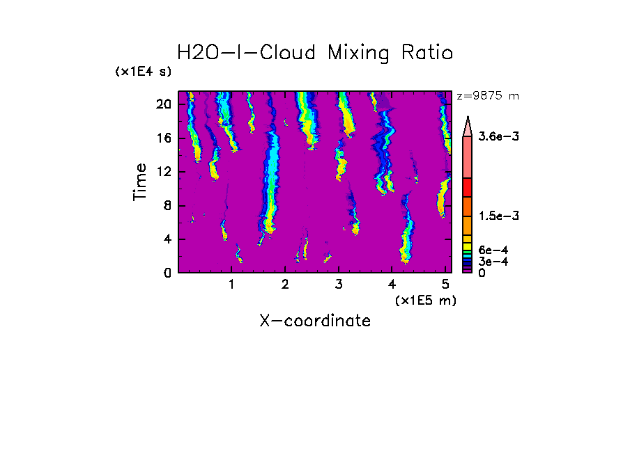 ¹âÅÙÌó 10 km ¤Ë¤ª¤±¤ë±À¿å¾ñÍð¤Î x-t ÃÇÌÌ (ÂÐή·÷ÃæÉô°Ê¾å¤Î¼¾ÅÙ¥¼¥í·×»»)