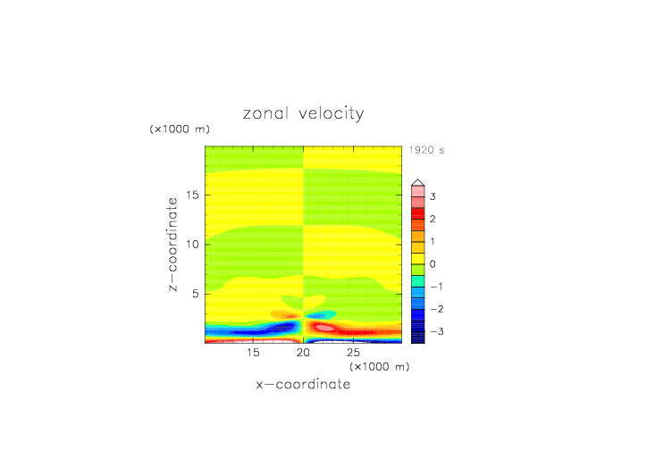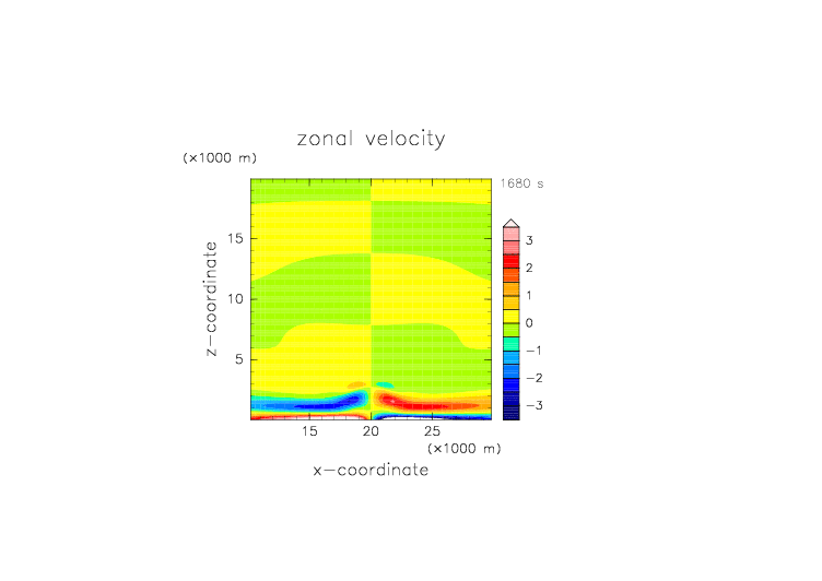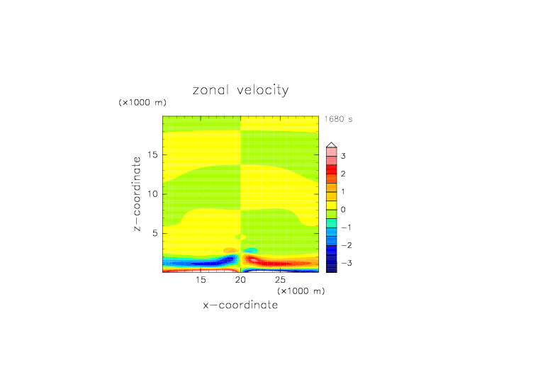 2D 湿潤サーマル 一定高度以上湿度もとの35% x方向速度擾乱