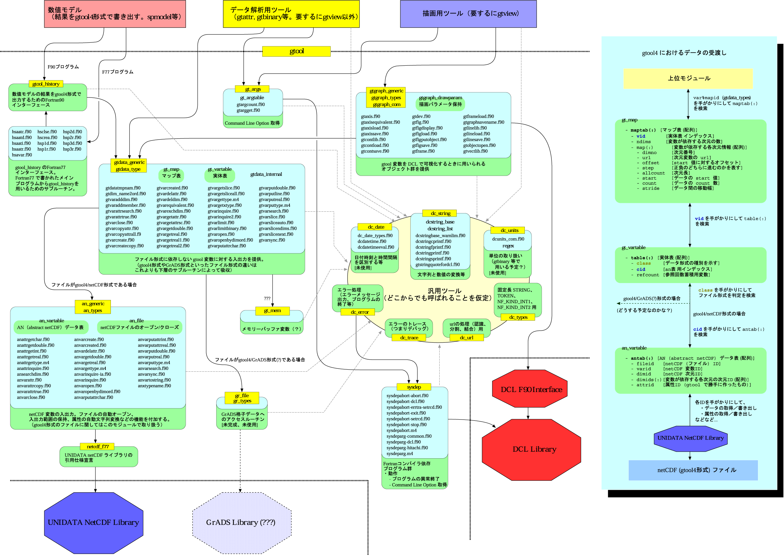 gtool4/Fortran90 ライブラリ相互依存関係詳細図 [PNG形式 (1942x1380pixel)]