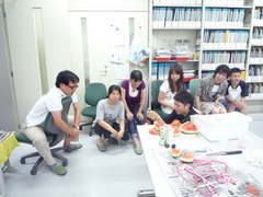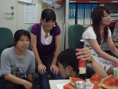 スイカに群がる人たち. |