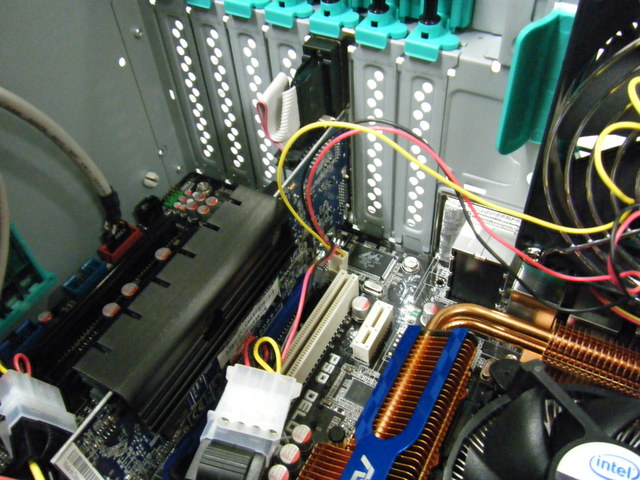 上から3つ目の黒いつまみを横にスライドさせた後, 上に持ち上げ, スロットのカバ ーをまず取り外します. そこにグラフィックボードを取り付け, つまみを元に戻して, 固定します.