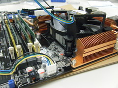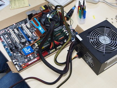 電源とM/Bをつなぎます. 電源ケーブルはCPU付近とメモリ付近の2箇所に接続してください. |