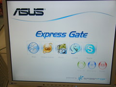 起動後, 10秒以内にキーボードの方向キーを押します. 右下にある3つのアイコンのうち中央のものに矢印をあわせ, ENTERキーを押し, BIOSを起動します. |