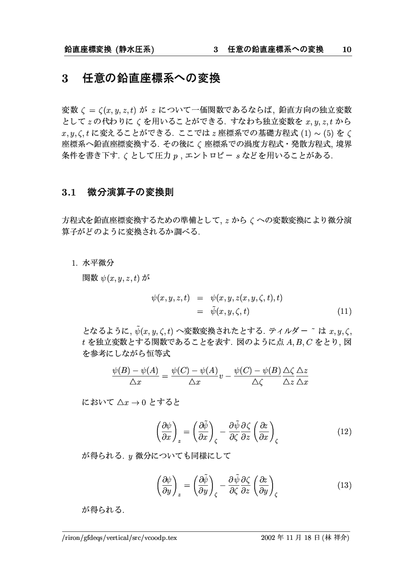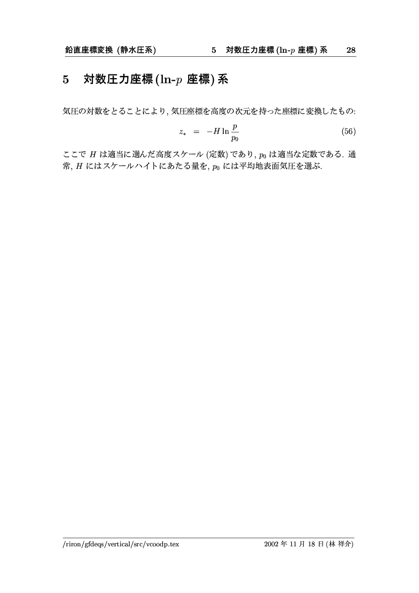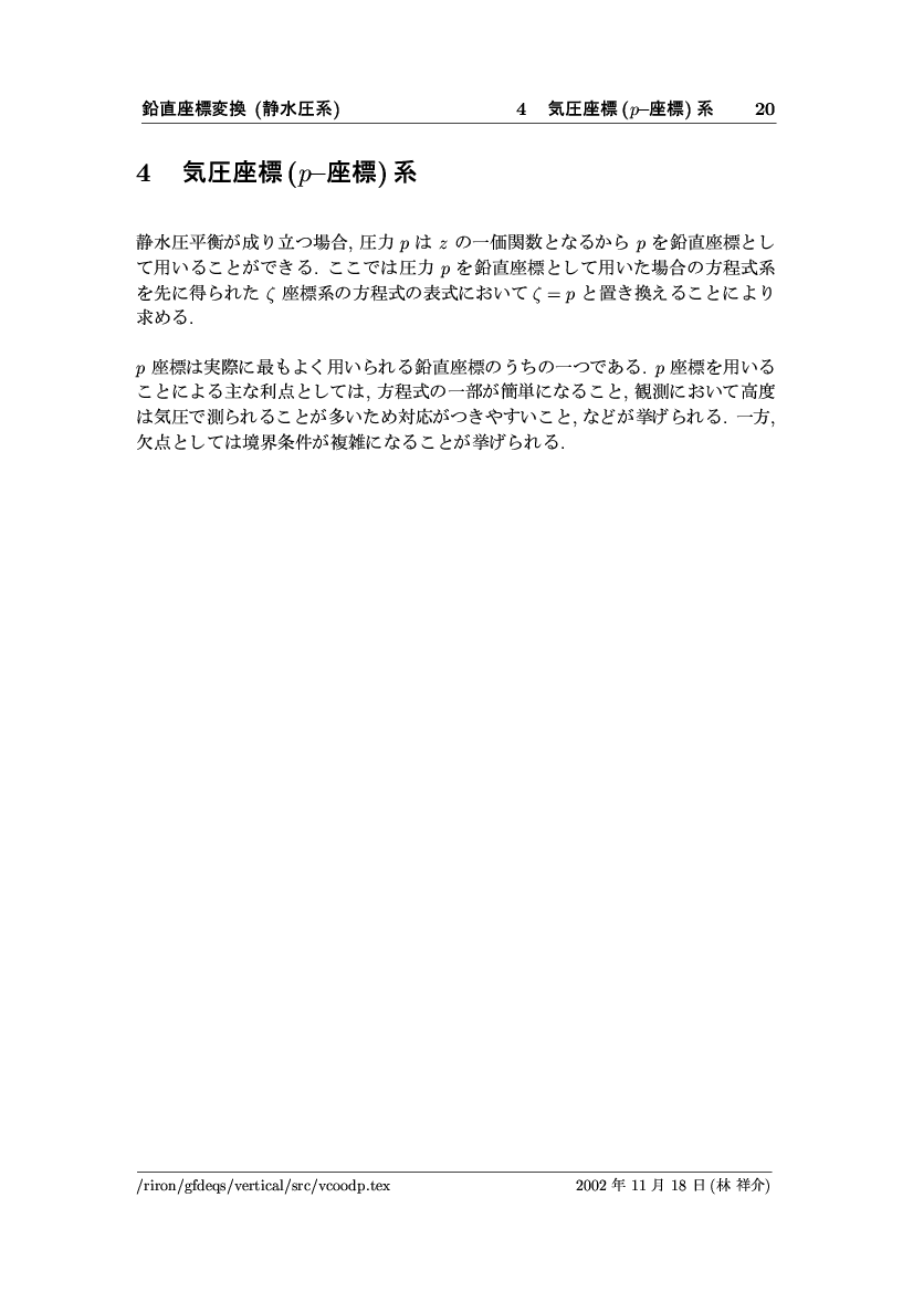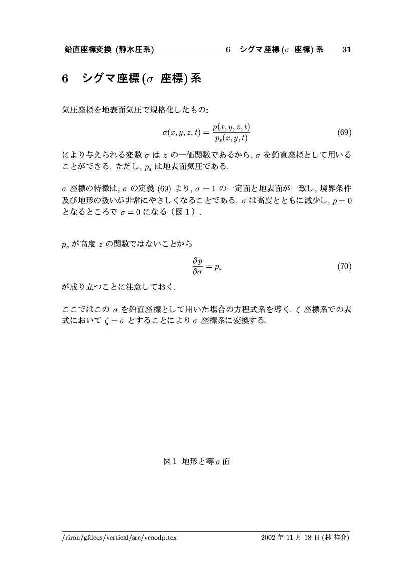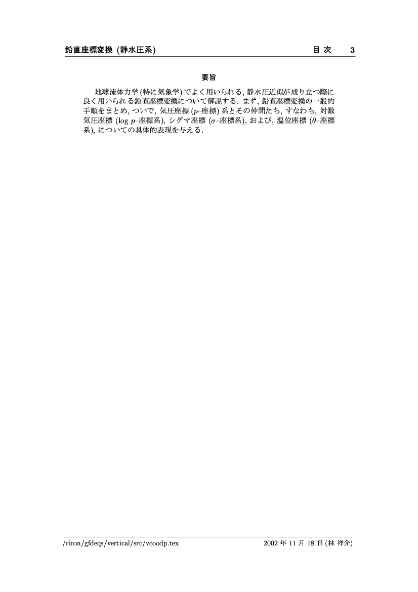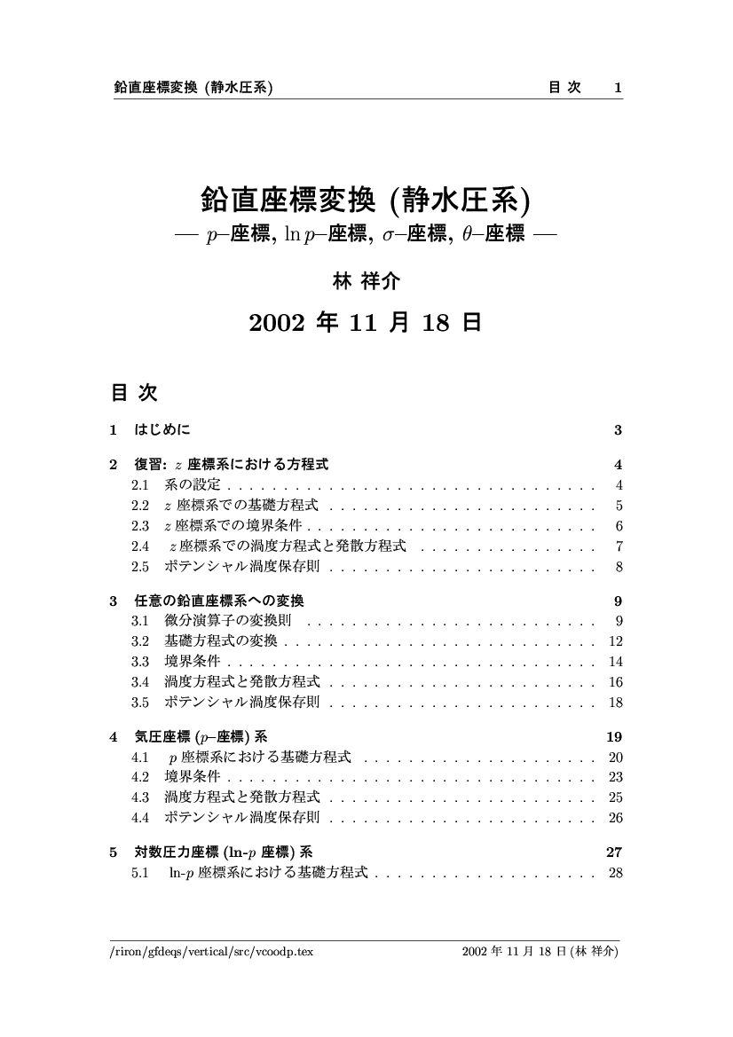 鉛直座標変換 (静水圧系) -- p-座標, ln p-座標, σ-座標 -- 公開領域