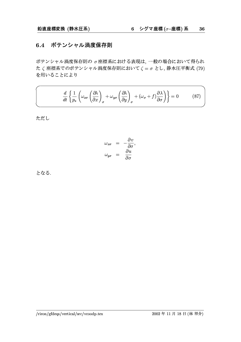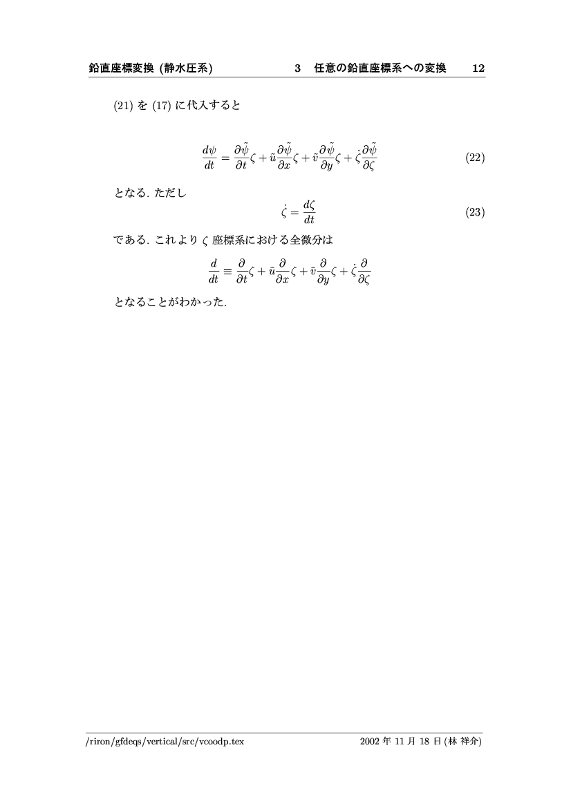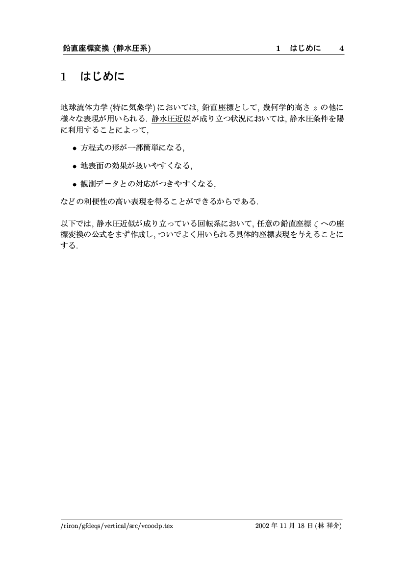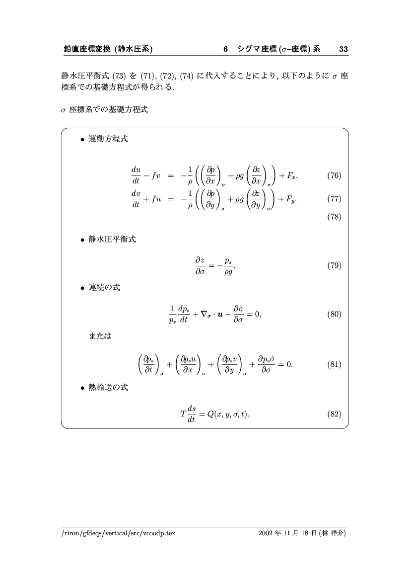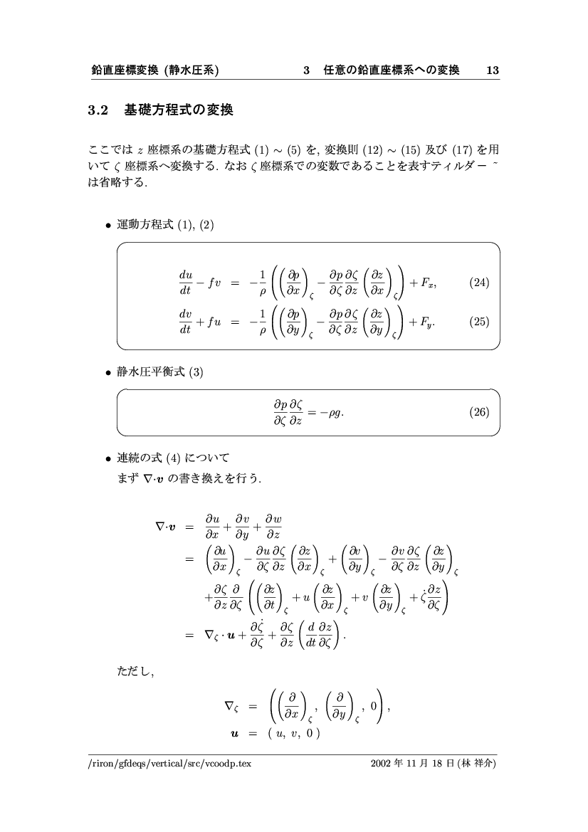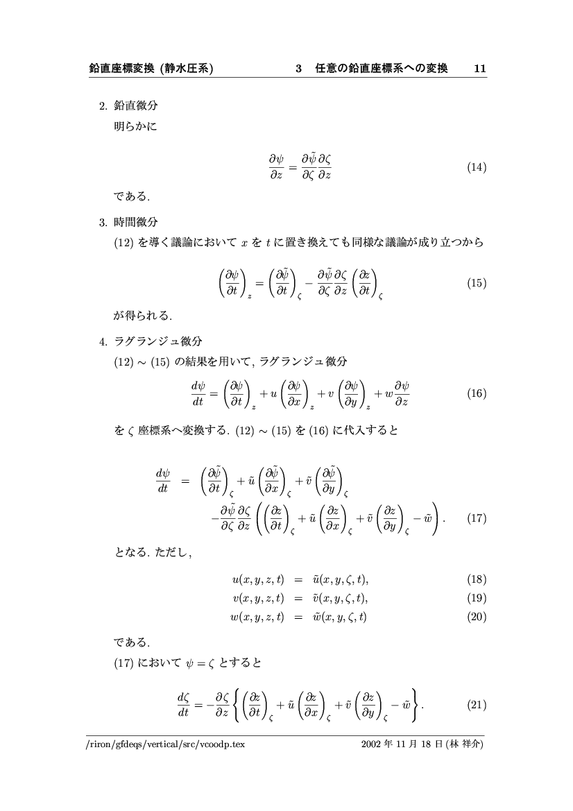 鉛直座標変換 (静水圧系) -- p-座標, ln p-座標, σ-座標 -- 公開領域