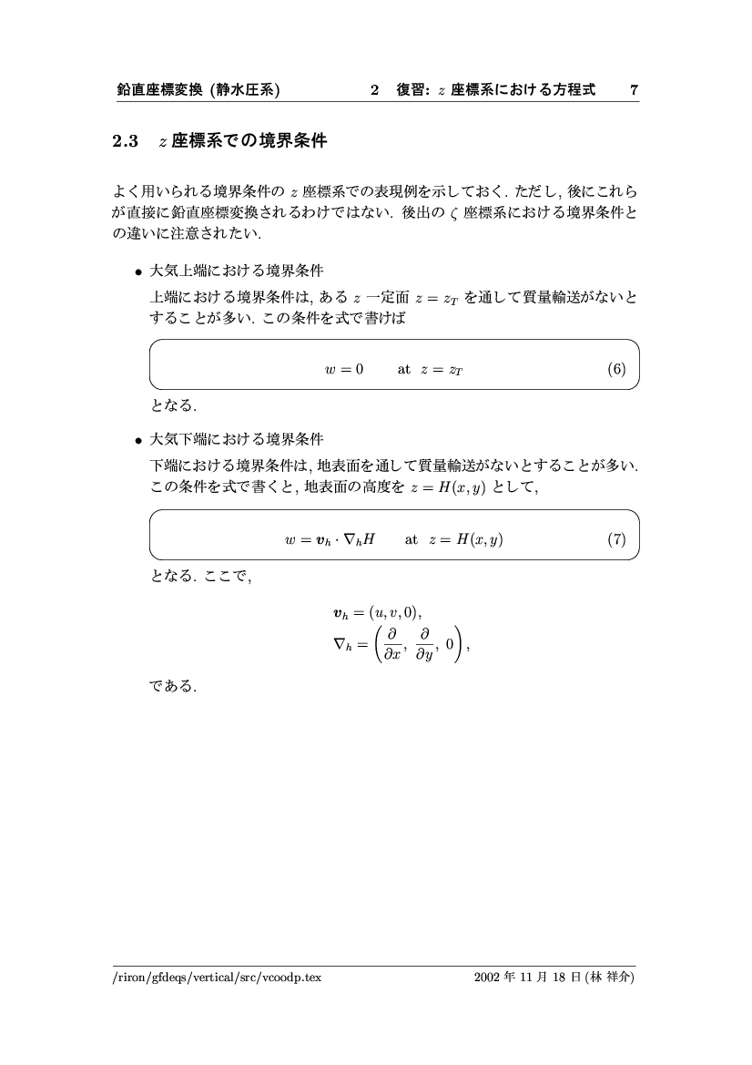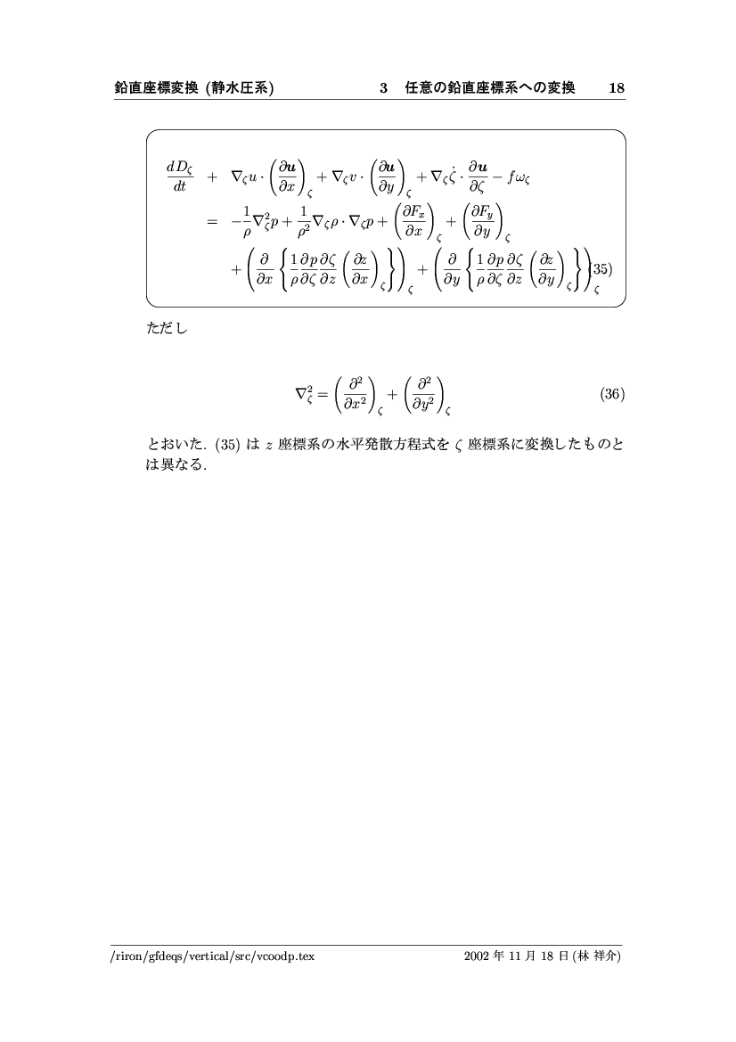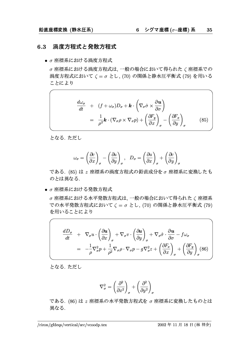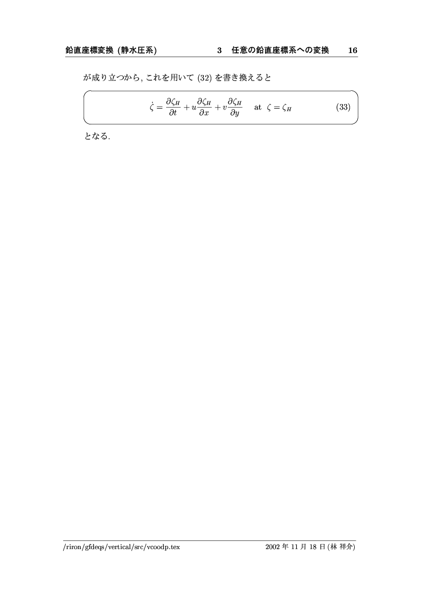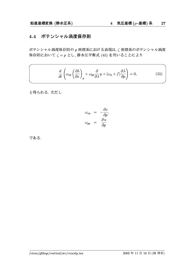 鉛直座標変換 (静水圧系) -- p-座標, ln p-座標, σ-座標 -- 公開領域