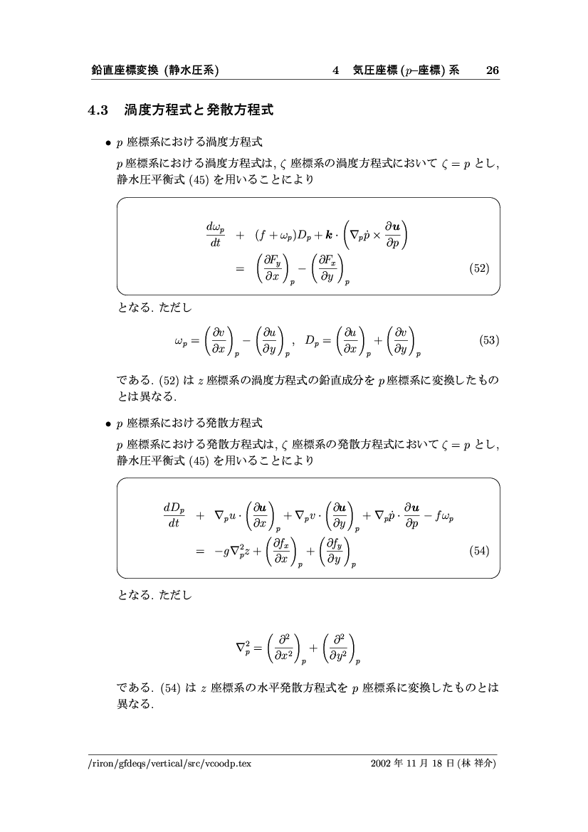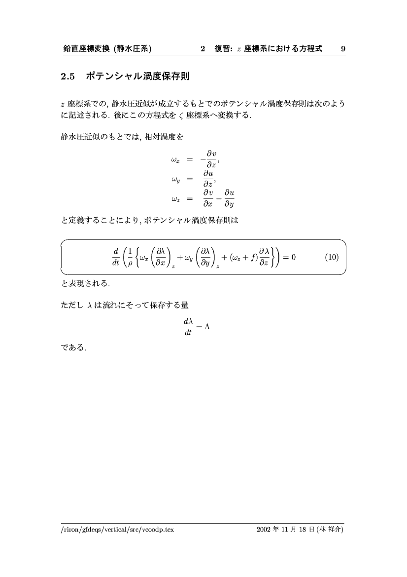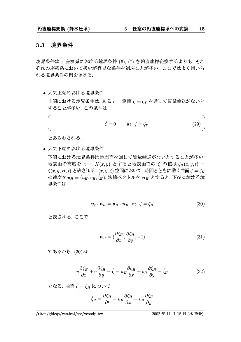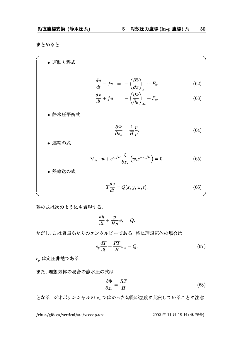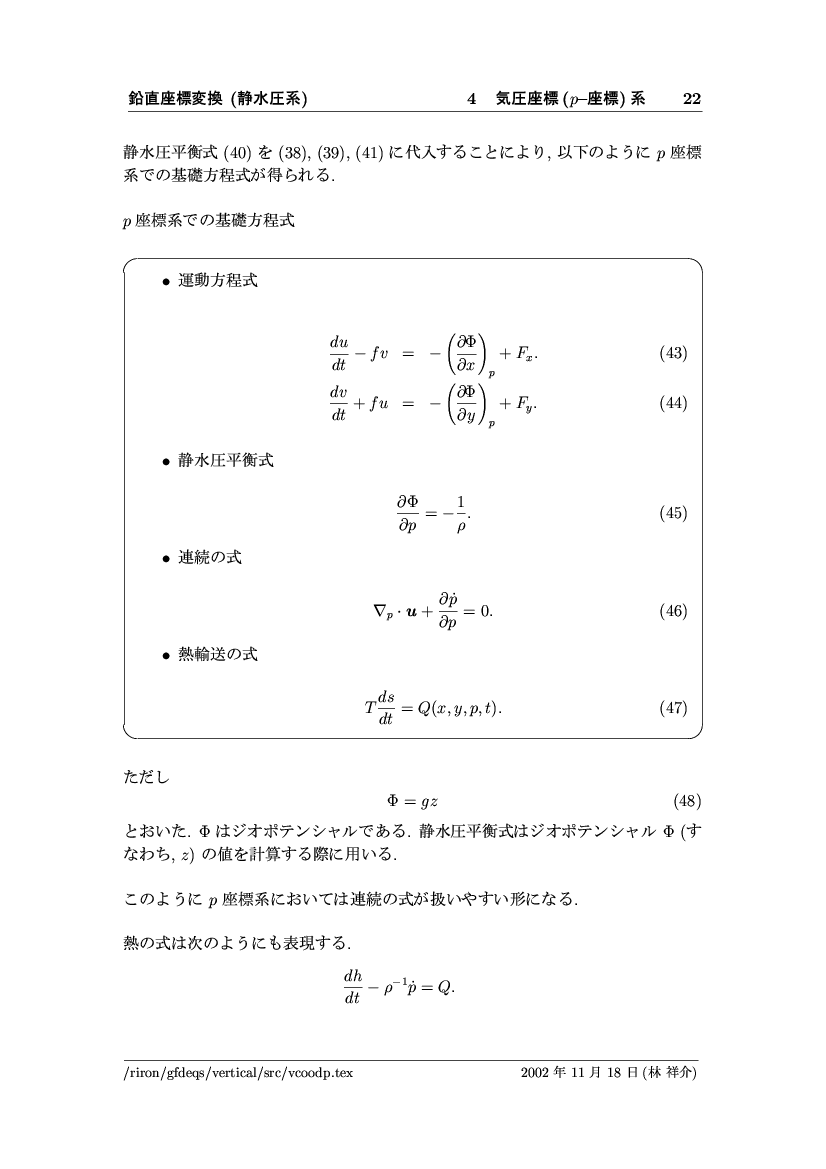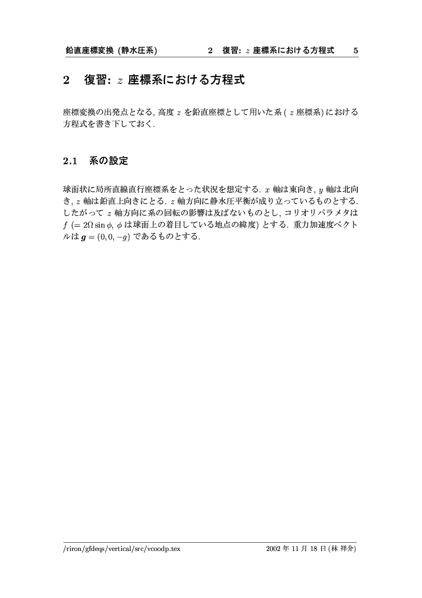 鉛直座標変換 (静水圧系) -- p-座標, ln p-座標, σ-座標 -- 公開領域