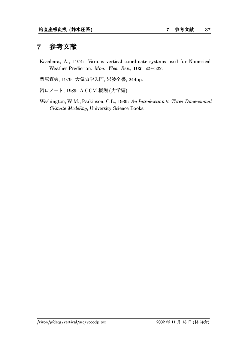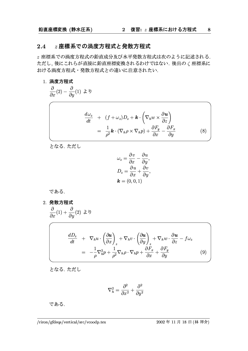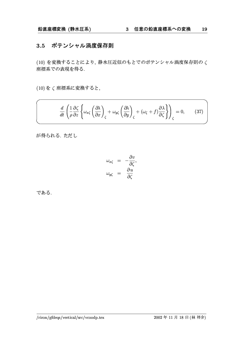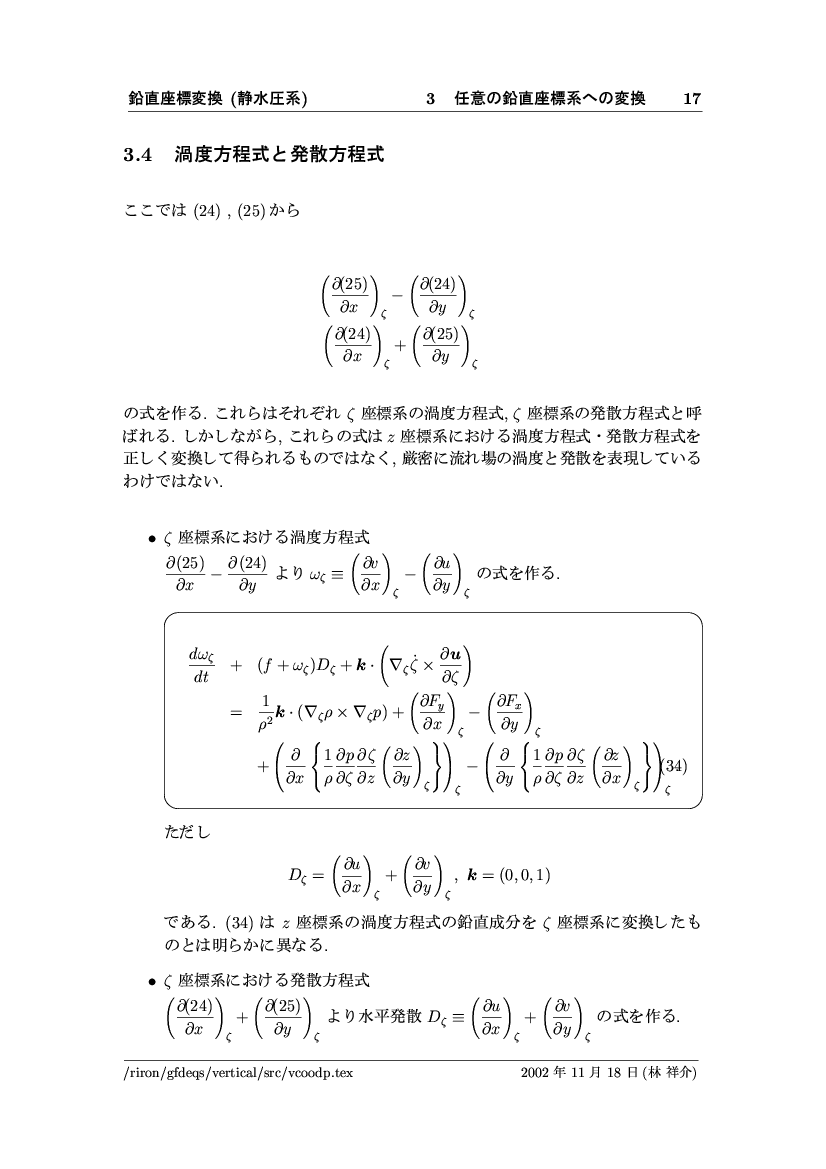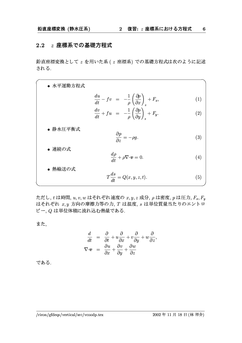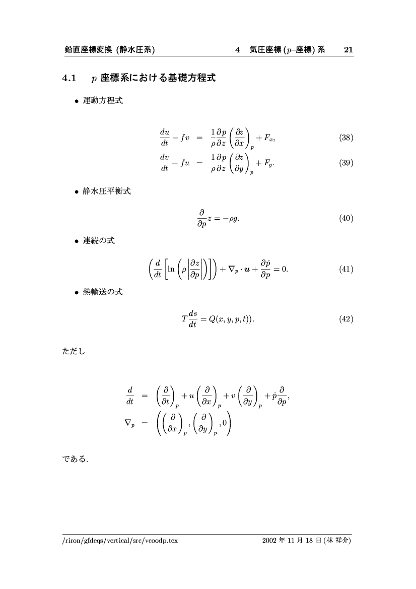 鉛直座標変換 (静水圧系) -- p-座標, ln p-座標, σ-座標 -- 公開領域