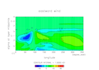 東西風. 赤道断面 (鉛直座標は対数プロット) |