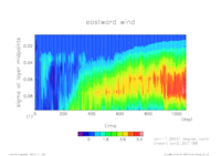 東西風. 赤道断面 (鉛直座標は対数プロット) |