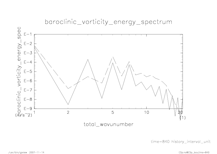 傾圧渦度・順圧渦度のエネルギースペクトル