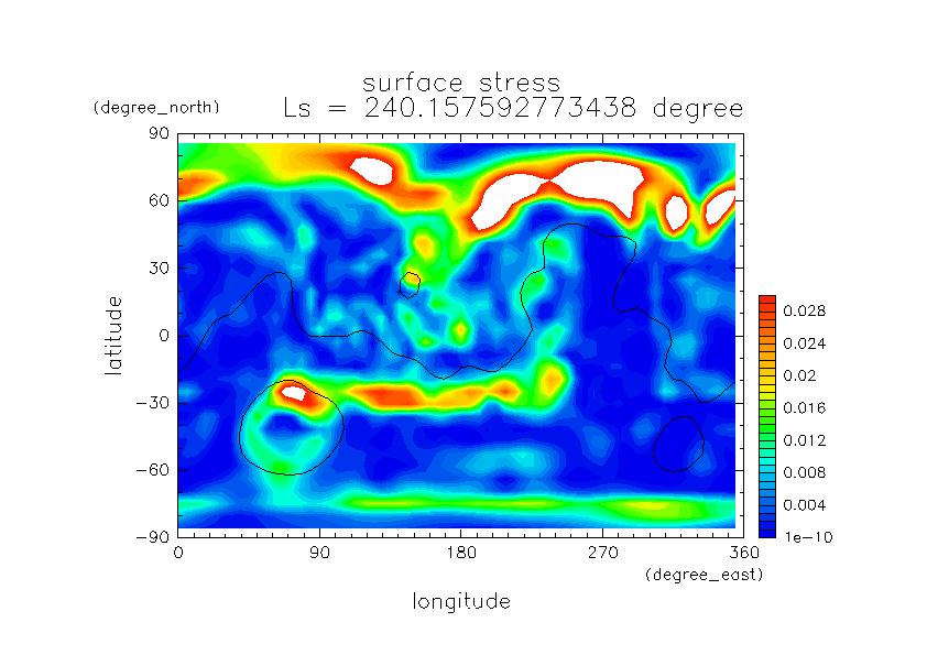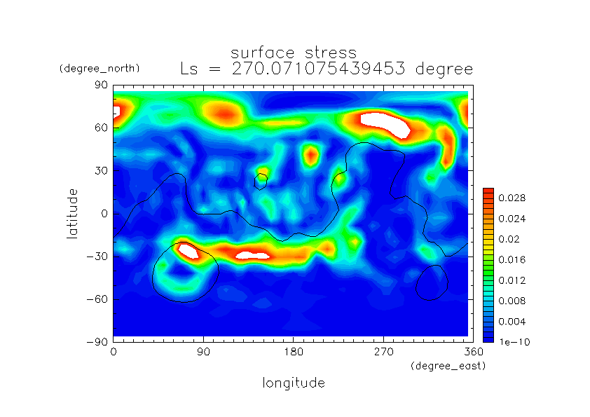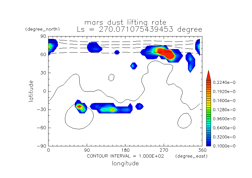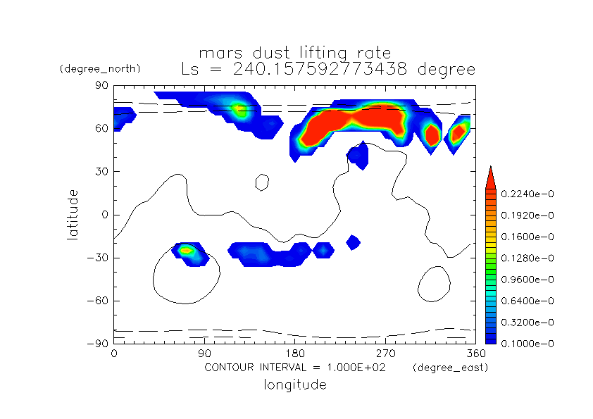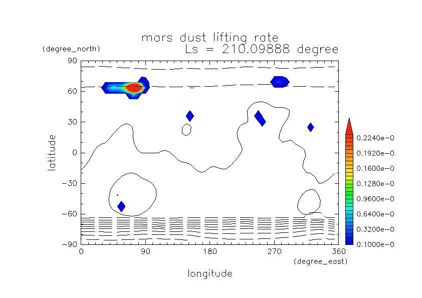 火星ダストと巻き上げ実験 DustScenario Const DOD067=0.2 水平分布の時間変化