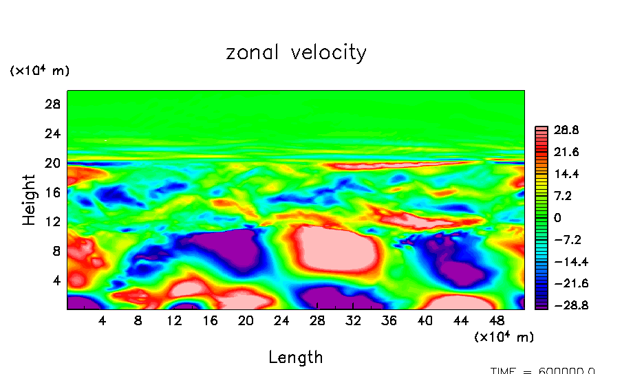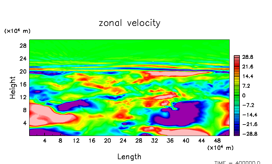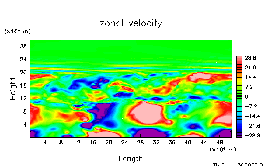 木星大気における平均的な流れ場と凝結成分の分布を数値的に求める.