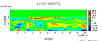 木星大気における平均的な流れ場と凝結成分の分布を数値的に求める.
