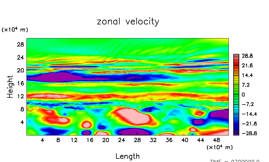 木星大気における平均的な流れ場と凝結成分の分布を数値的に求める.