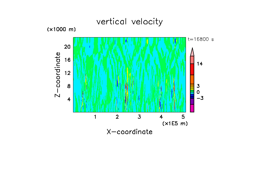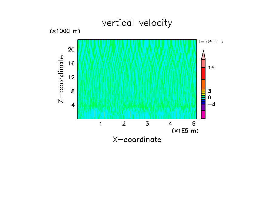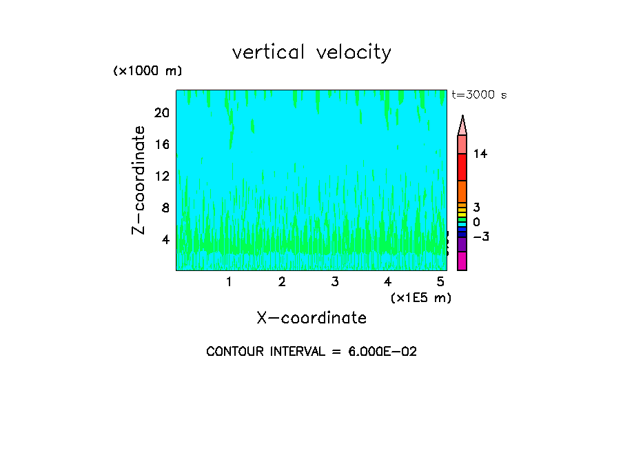 - 高度 300 m に振幅 0.3 K のランダムな擾乱を置く