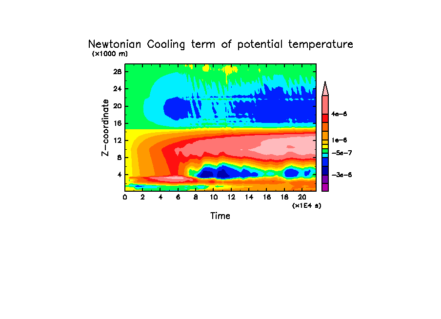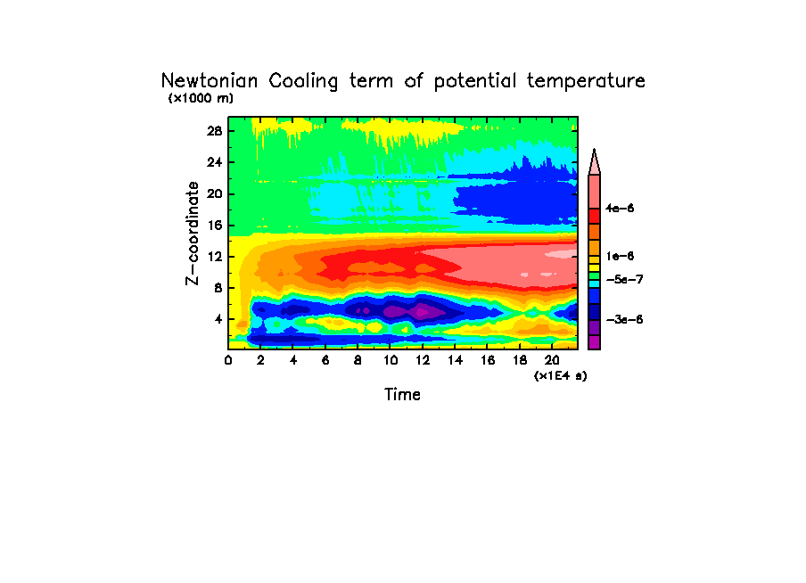 - -2 [K] * (15 [km] - z)/5 [km] [K/day]