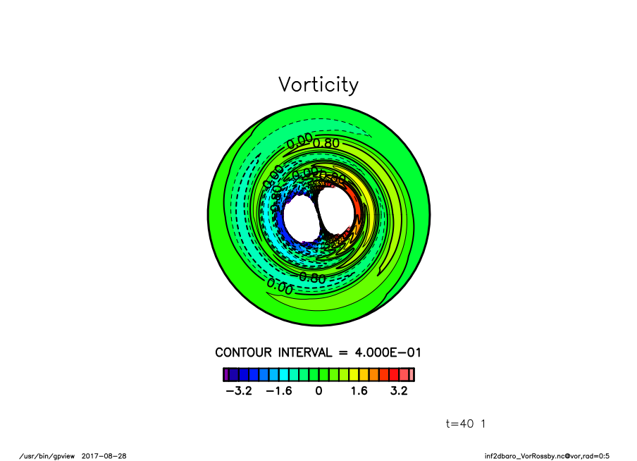 This page shows examples of vortex Rossby waves on an infinite 2-dimensional domain (Re-calculation of Montgomery and Kallenbach, 1997).