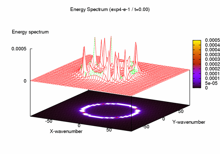 2次元2重周期境界順圧モデル : 減衰乱流問題実験4-1-1 アンサンブル実験結果(エネルギースペクトル3次元図) サムネイル画像置き場ディレクトリ