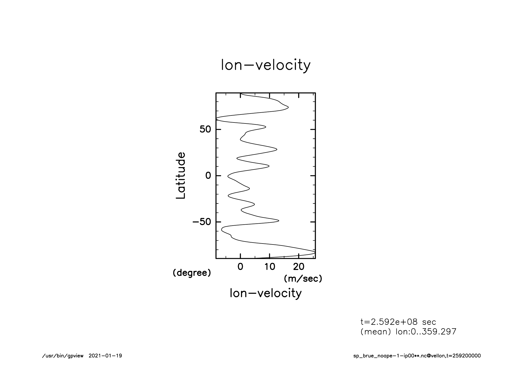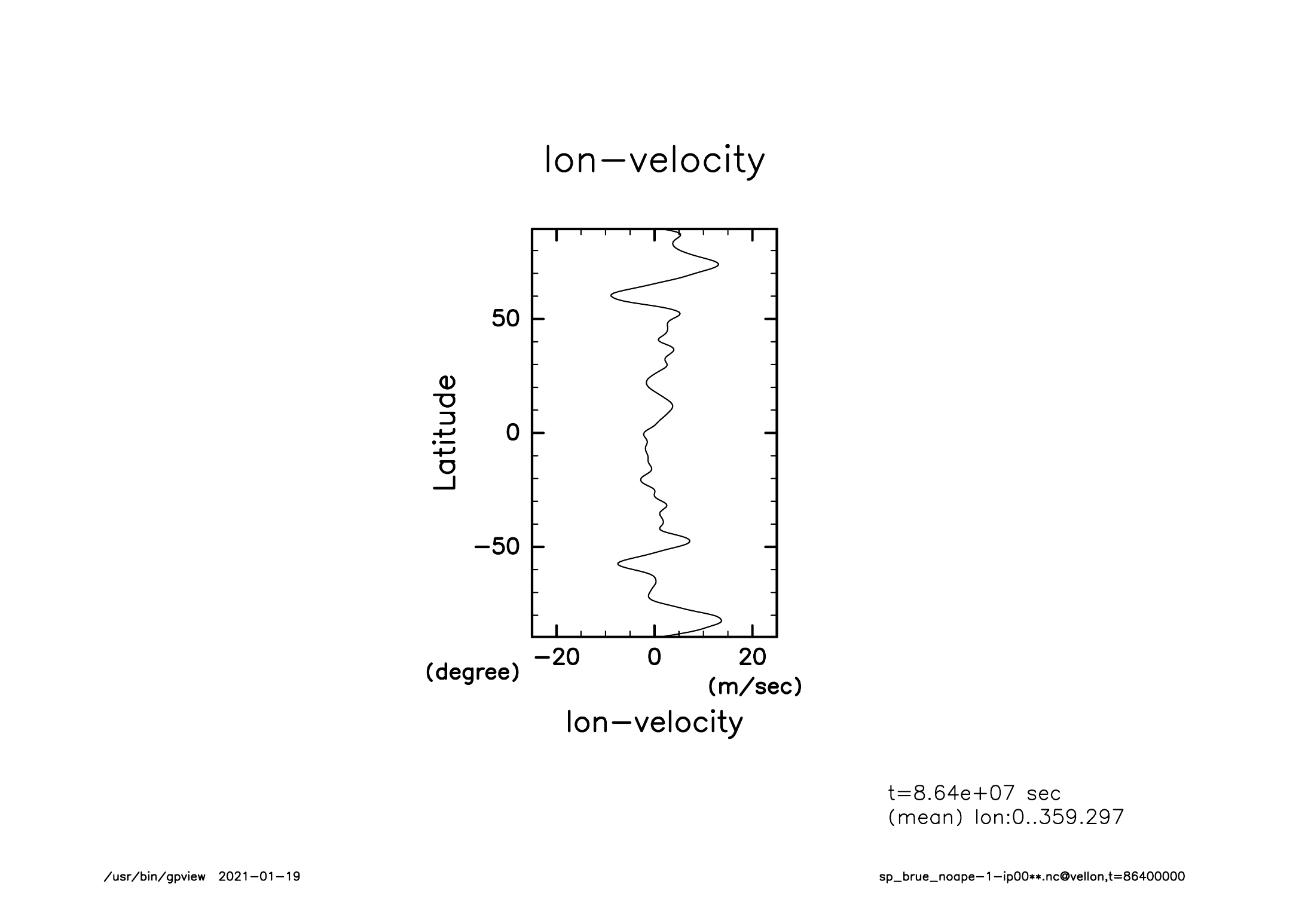 zonal mean lon-velocity (0 day)