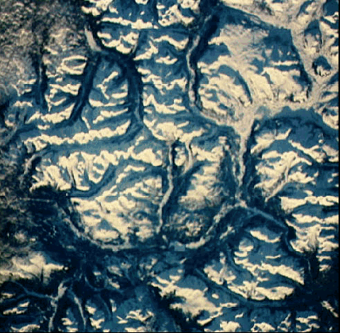 is an excellent example of mountains on Earth. This space shuttle image