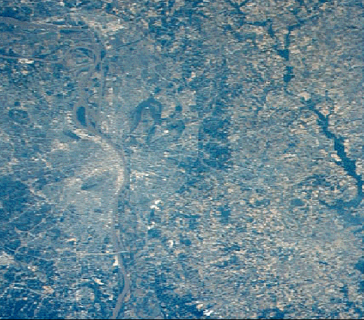 scars." These scars are visible in the river bottom land between the